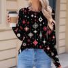 Women's Fashionable Casual Christmas Printed Pleated Comfortable Round Neck Loose Long Sleeve T-Shirt Top