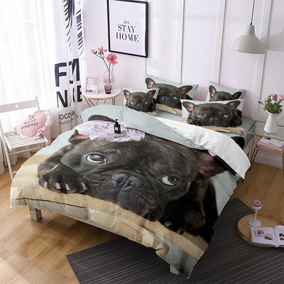 Dog Duvet Cover Set 3D Animal Theme Polyester Bedding Set Queen King Size Cute Pug Dog Printed Cover For Kids Teen Boy Bedspread