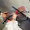 Unisex Oversized Outdor Sunglasses Women Luxury Rimless Diamond Eyewear Shades Large Round Frame UV400 Sun Glasses for Female