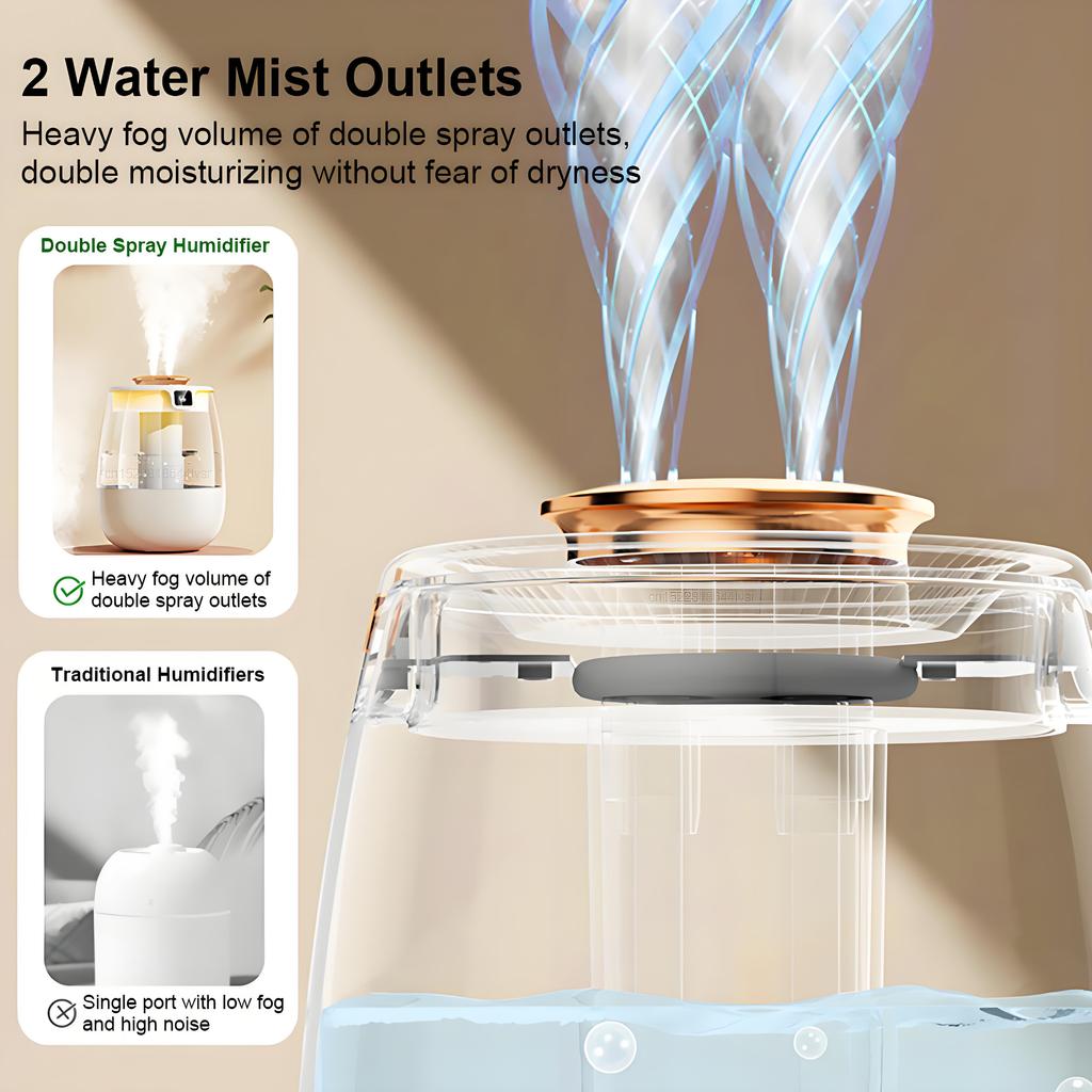 Mini USB Portable Dual Nozzle Cold Fog Bedroom Silent Humidifier with AI Intelligent Digital Display of Air Humidity