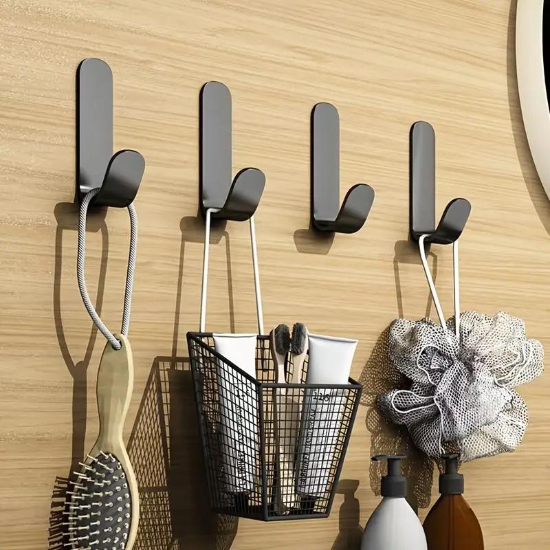 5Pcs Iron Adhesive Hooks Polished Finish No-Drill Wall Mount Coat and Hat Hangers for Bathroom Door Modern Metal Organizer Hooks