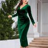 BITCED Plus Size Long Sleeve Velvet Bodycon Dress Sexy Pleated Wrap-Style Deep V-Neck Party Cocktail Gown