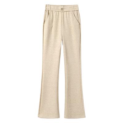 Womens Fustl Pants Solid Color Split Hem Flared Knit Sports Pants Women Pants Light-Khaki IZ0599