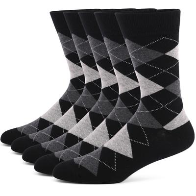 Mens Dress Socks Plus Size High Quality Combed Cotton Crew Socks Black Cool Argyle Breathable Casual Socks for Men