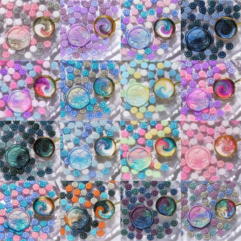 Flower shaped glitter wax seal beads, retro and metallic colors, perfectly matching with different types of invitation envelope colors.