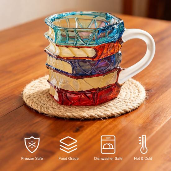 Literary Style and Cozy Atmosphere: Designed to resemble a collection of retro novels, this cup blends artistic style with a warm literary ambiance. Its nostalgic appearance evokes the comfort of curling up with a favorite book, making it perfect for creating a cozy environment during coffee or tea breaks.