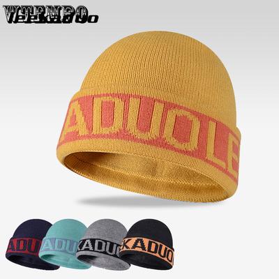 Jacquard Hat European and American Letter Knitted Hat with Velvet Warm Hat Casual Sports Hoodie