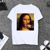 Summer Spoof Mona Lisa Drink Beer Print T Shirts Women Aesthetics Funny Casual Short Sleeves Tops Female Sleeved Harajuku