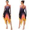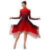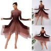 Women Dance Leotard Dress Gradient Mesh Long Sleeve Irregular Hem Keyhole Back for Lyrical Modern Performance