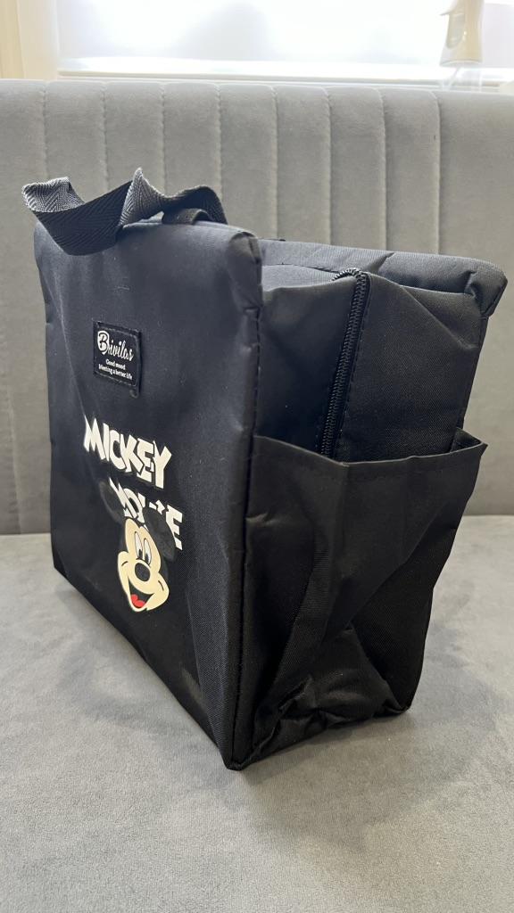 ⭐⭐⭐⭐⭐ Mini Thermal Bag Mickey Mouse – Practical and Adorable! Shipping and Delivery: 🇮🇹 The package arrived in Italy in just 15 days. Shipping was fast and tracking was accurate. The bag arrived well packaged and in perfect condition. Design and Materials: 🖤 The bag is in an intense black color with a beautiful print of Mickey Mouse. The design is well-defined, with vibrant colors that don't seem likely to fade easily. Despite being a "mini" bag, the internal space is very well managed. Functionality: 🍱 Dimensions: Ideal for a quick lunch, a snack, or for carrying children's meals. Insulation: The interior is lined with insulating material that maintains the temperature of food well (both hot and cold). Closure: The zipper is sturdy and slides smoothly. My opinion: 🔝 It's the perfect accessory for those who love the Disney world and are looking for something functional but not too bulky. It's lightweight to carry thanks to the sturdy handles and fits comfortably inside a backpack or larger bag.. Strengths: ✅ Iconic and timeless Mickey Mouse design. ✅ Fast shipping in 15 days. ✅ Compact but spacious dimensions for a standard set of containers. Verdict: Highly recommended! Excellent value for money. 🌟🌟🌟🌟🌟