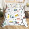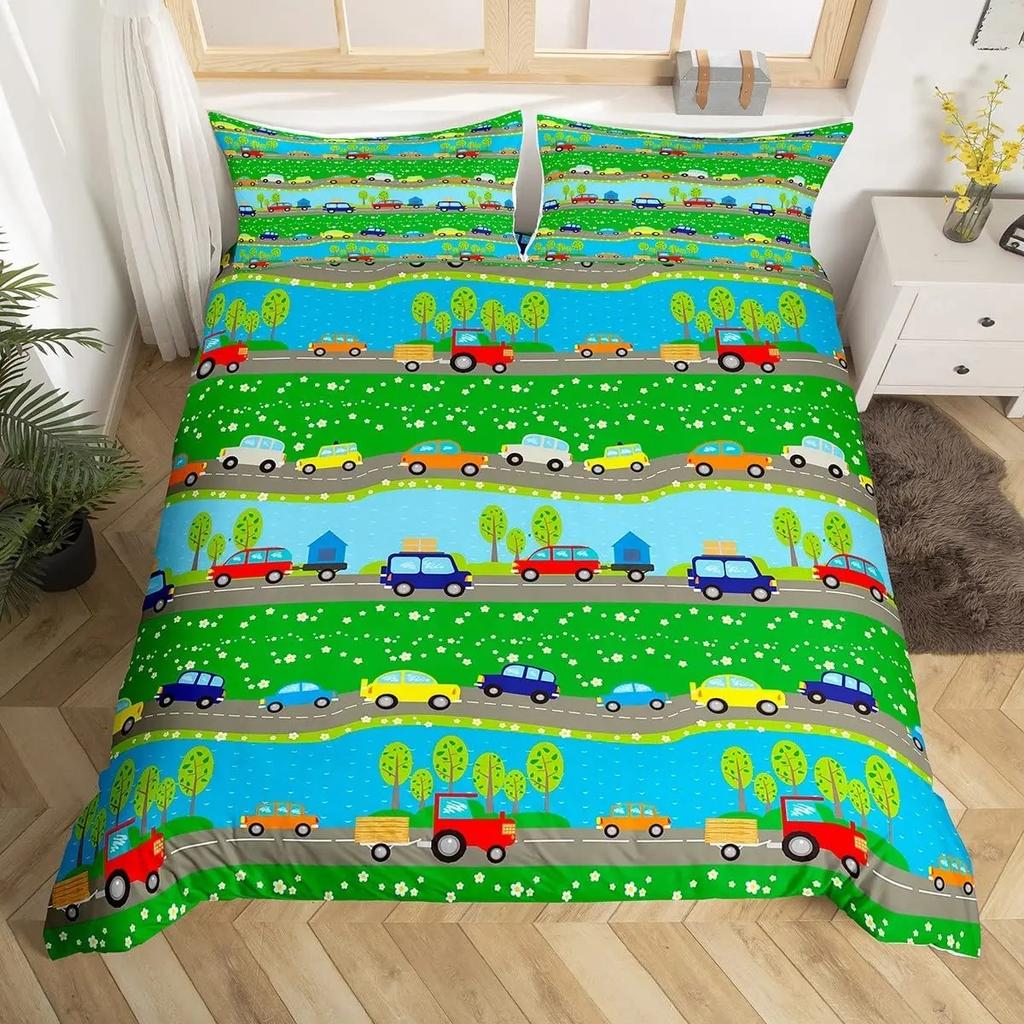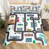 Kids Cartoon Car Duvet Cover Set City Building Street Road Bedding Set Microfiber Vehicle Truck Comforter Cover Twin Queen Size