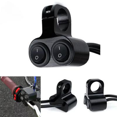 Aluminum Alloy Dual Button Control Flasher Speaker Switch Waterproof 12V Headlight Switch Motorcycle Handlebar 7/8in 22mm