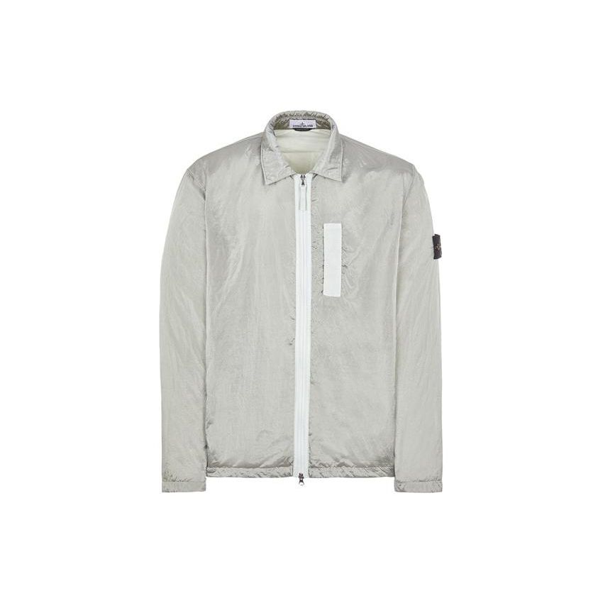 STONE ISLAND FW22 Metallic Nylon Solid Color Polo Collar Long Sleeve Jacket Men Jacket Pearl-Gray 7715Q0519-V0061