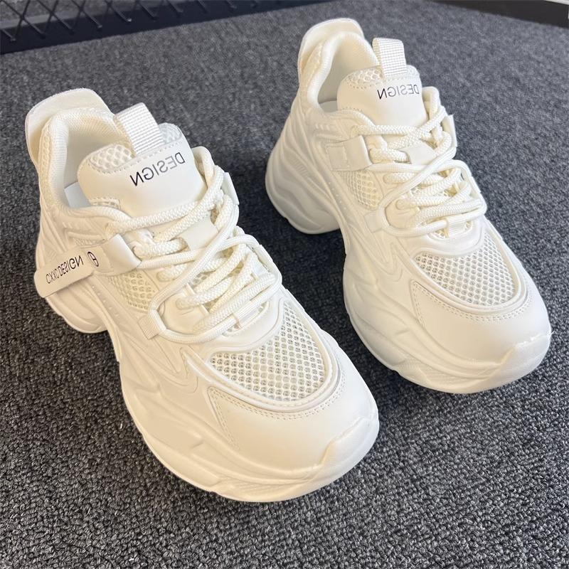 Leather Dad Shoes Women's Spring New Mesh Small Platform Women's Shoes Versatile and Lightweight Sports and Leisure Shoes