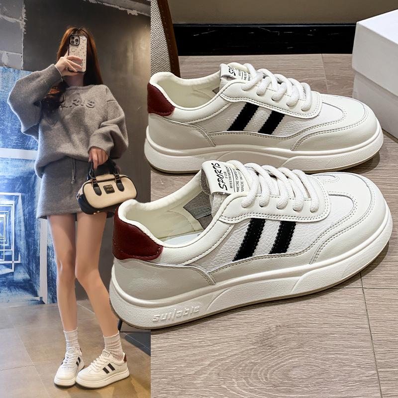 The First Layer of Cowhide~ Genuine Leather Thick-soled White Shoes Women's Shoes Are In Autumn, New Casual Sports Single Shoes Women's Board Shoes