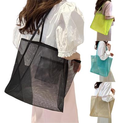 Women Mesh Large Capacity Hollow Out Beach Shoulder Bag Fashion Nylon Solid Color Shopper Tote Bag