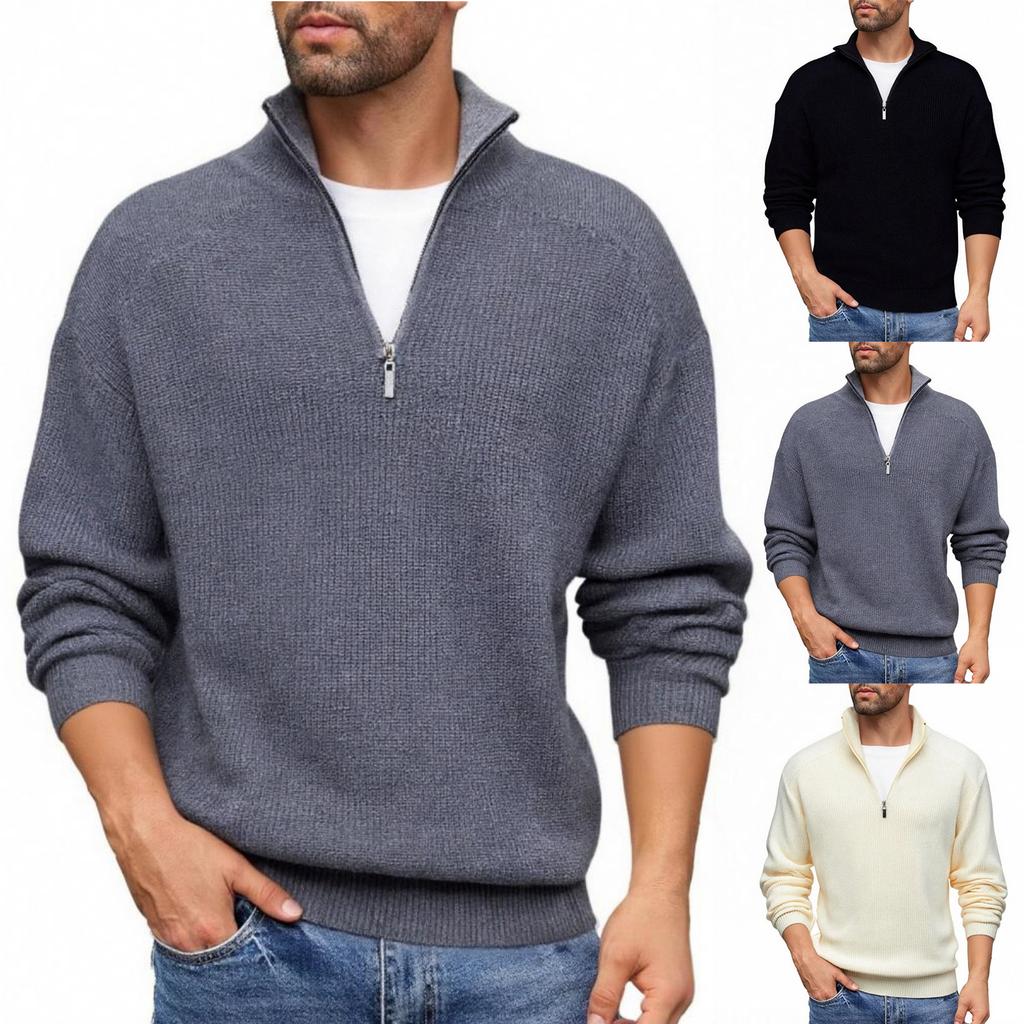 Men's Casual Solid-color Warm And Form-fitting Base Layer, Men's Semi-zipper High-neck With A Knitted Sweaeter Inside