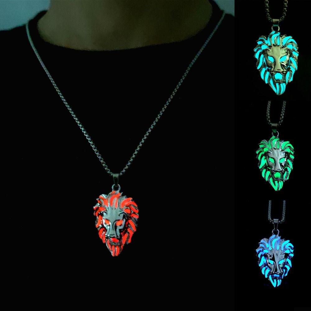 Zinc Zinc Alloy Luminous Pendant Necklace Lion Wolf Hip Hop Neck Chains Cool Halloween Necklace Party