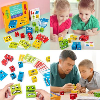 Cube Face Change Building Blocks Board Game Wood Puzzle Montessori Expression Wooden Blocks Blocos For Children Kids Toys Gift