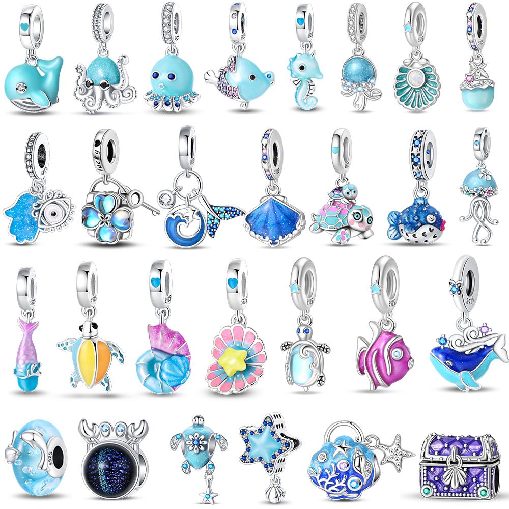 Blue Series Copper Turtle,Whale & Seahorse Dangle Charm Fits Bracelet Kids Ocean Jewelry Accessories