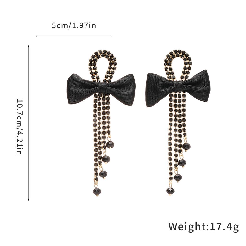 Silver Needle with Diamonds Fabric Bow Fringed Earrings Retro Fashion Temperament Earrings Light Luxury High-end Earrings