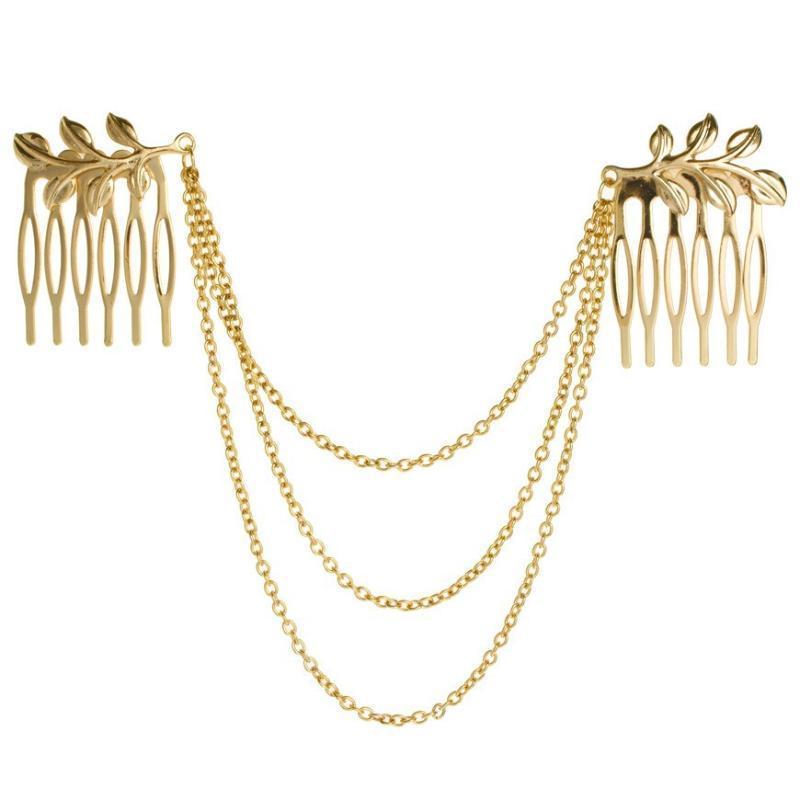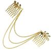 Fashion Gold Tassel Tree Leaf Hair Comb, Double Headed Insert Comb Tassel Bridal Headpiece Ladies Elegant Dress Accessories Gift