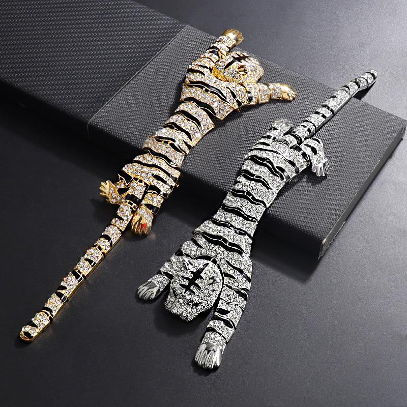 Men's Oversized Domineering Glitter Rhinestone Tiger Brooch Fashion Shawl Animal Pin Suit Women's Coat Accessories