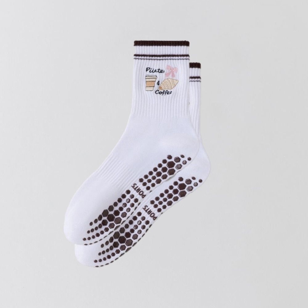 Pilates Socks with Grips for Women Cute Cherry Grip Socks Non Slip Cotton Ruffle Cuff Cherry Socks for Yoga Barre Ballet