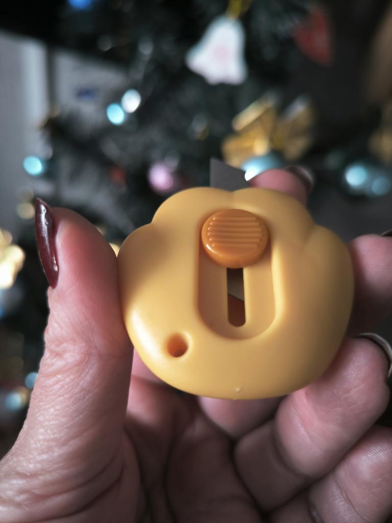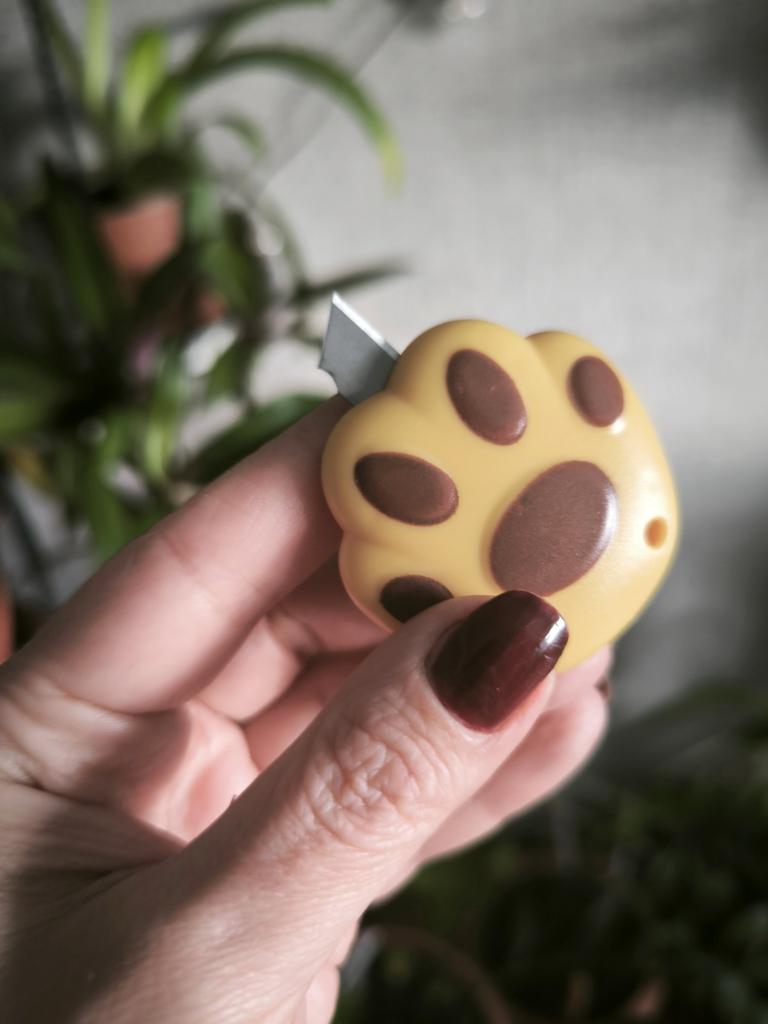 one of those impulse purchases that end up being the most used on the desk. It's the perfect combination between "kawaii" aesthetics and pure functionality for day-to-day use. What I like most is its extreme portability. Being so small and rounded, it fits in any corner of the case or even hung on the keys thanks to its small side hole. The blade is retractable and has a sliding locking system, which gives you a lot of security when using it; it only comes out when you want it to. Although it looks like a toy, the edge is surprisingly precise and resistant, ideal for opening Amazon packages in a second, cutting clothing labels, or doing crafts that require a clean cut.