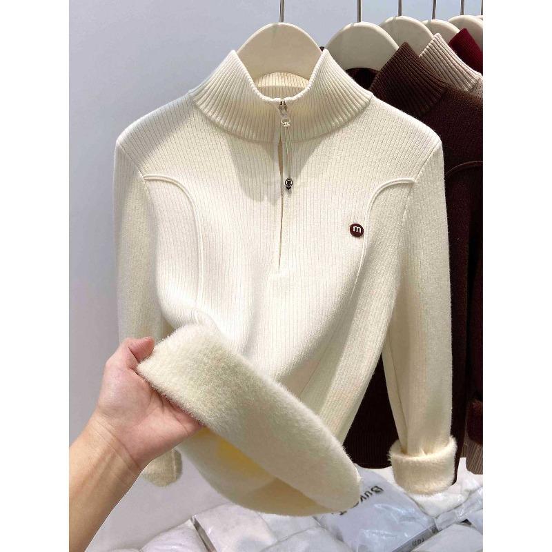 Thickened Semi-turtleneck Zipper Sweater Women's Autumn and Winter Stacked Wear Bottoming Shirt Versatile Lazy Wind Knitted Top