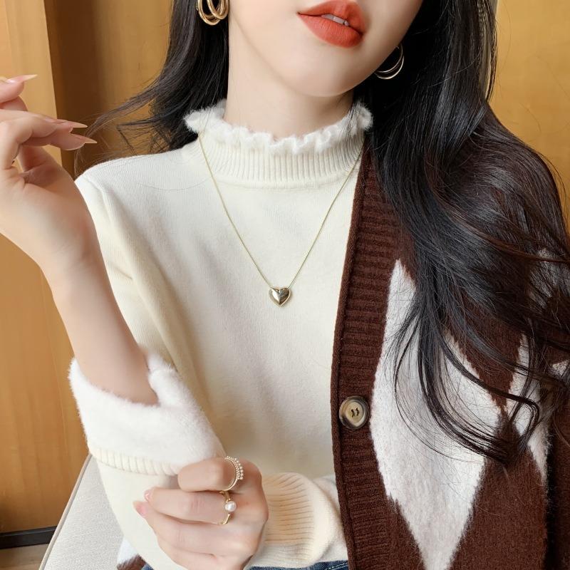 Solid Color Semi-turtleneck Integrated Imitation Mink Fleece Sweater Women's Soft Waxy Knitted Top Spring Fungus Edge Bottoming Shirt