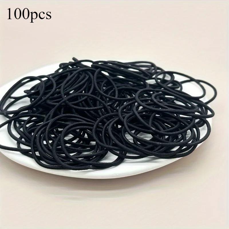 Women & Girls' Black Elastic Hair Ties – Solid-Color Ponytail Bands, Simple & Durable Women's Hair Accessories