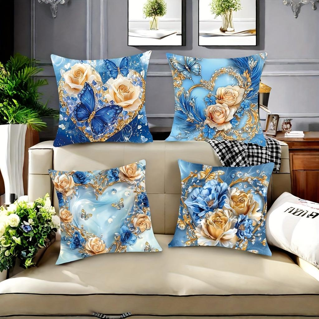 Elegant Floral and Butterfly Decorative pillowcaseSuitable for Sofa Car Bedroom Decorative Cushion Cover Pillow Cover