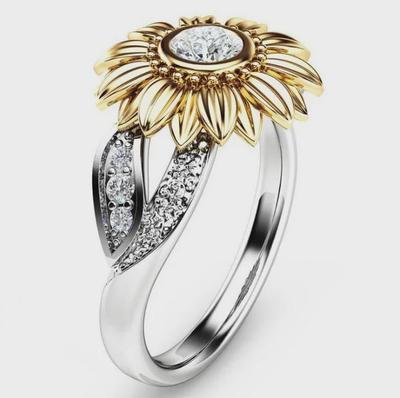 Diamond-encrusted Gold and Silver Dual-color Sunflower Fashion RingPersonalized Jewelry