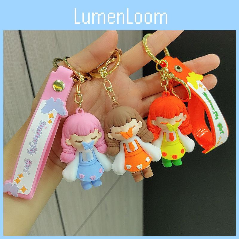 Adorable Cartoon Silicone Keychain Charming Butterfly Kiss Girl Design