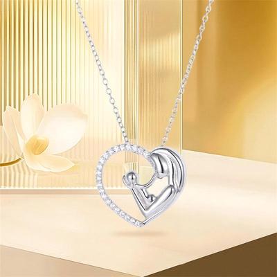 New S925 Sterling Silver Creative Zircon Maternal Love Gold Necklace Female Temperament Diamond Mother's Day Love Pendant