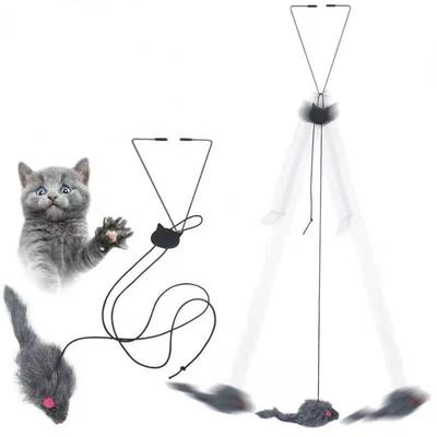 Triangle Hook Simulation Mouse Adjustable Retractable Cat Interactive Elastic Rope Squeaky Hanging Door Kitten Play