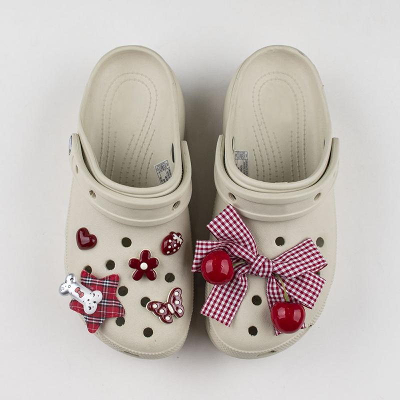 1 Set Diy Footwear Decoration Sanrio Hello Kitty Bowknot Red Series Shoe Charms Kit For Clogs & Sandals Xmas Gifts