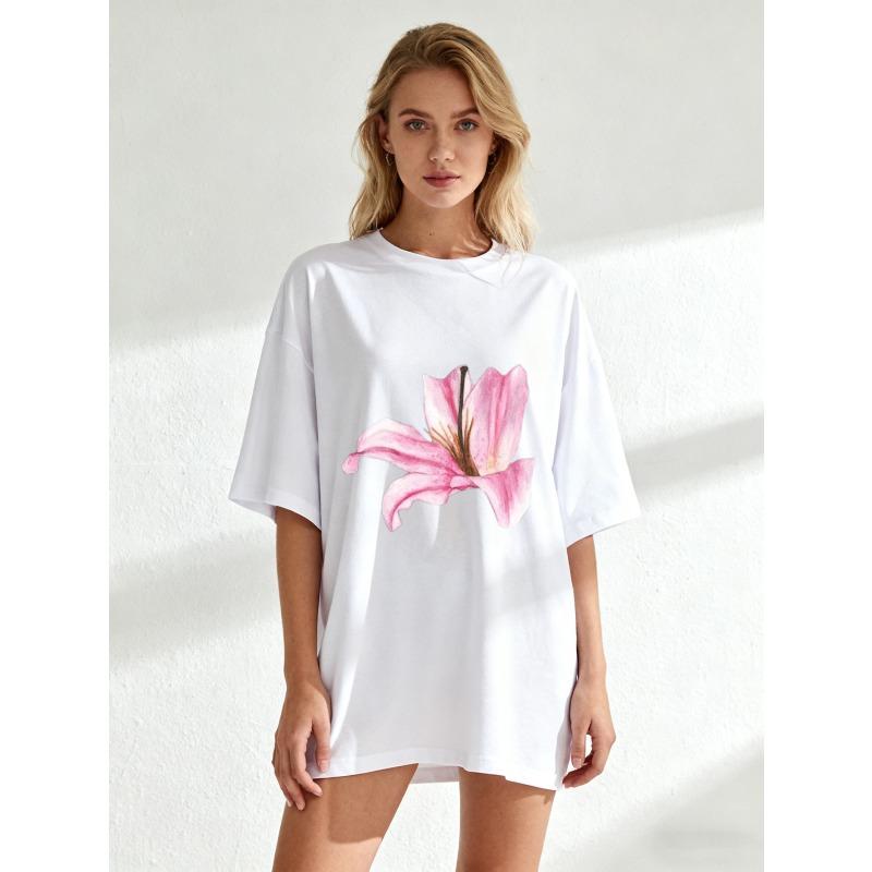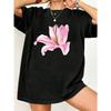 Black Oversized T Shirt With Pink Lily Flower Print For Casual Wear And Summer Outfits