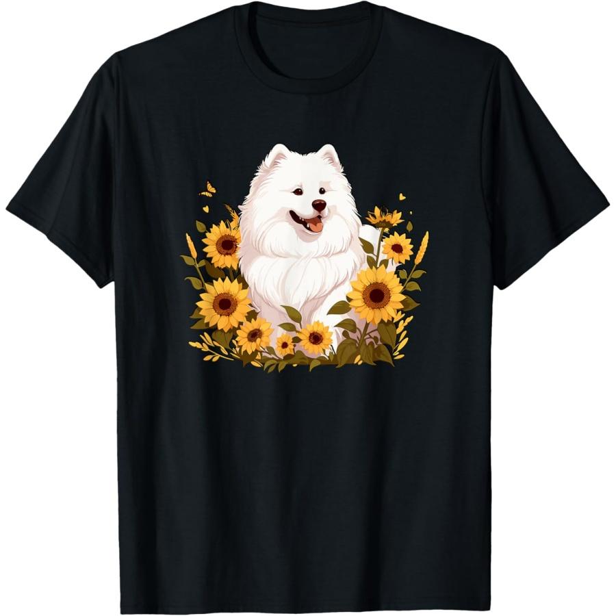 Cute Funny Sunflowers Floral Womens Girls Samoyed Dog Lover T-Shirt
