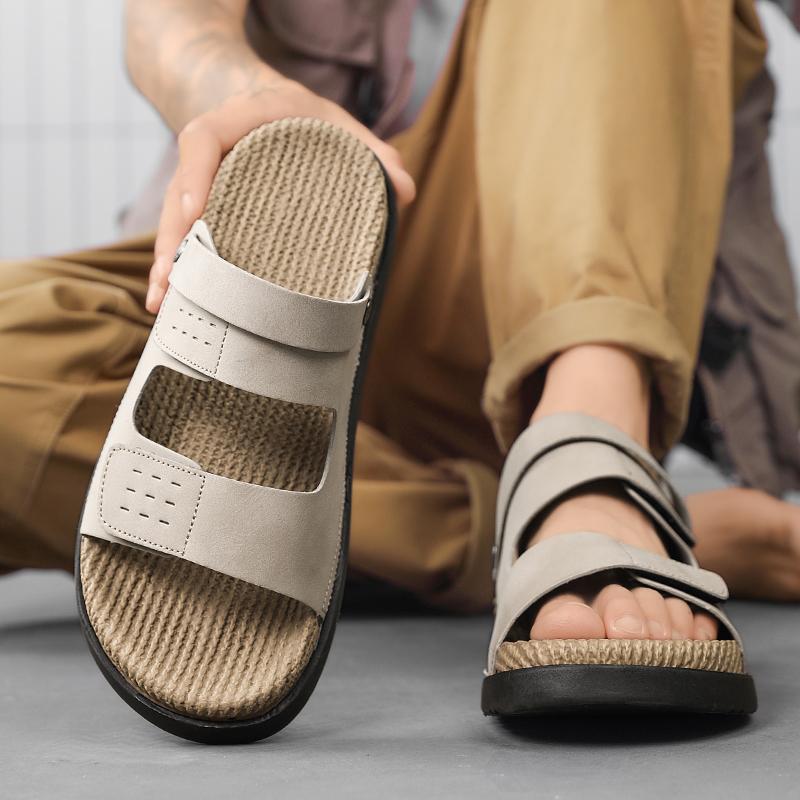 Fashion Quality Versatile Casual Men Slippers Outdoor Thick Soled Soft Comfortable Beach Slippers Simple Fashionable Flat Leather Sandal