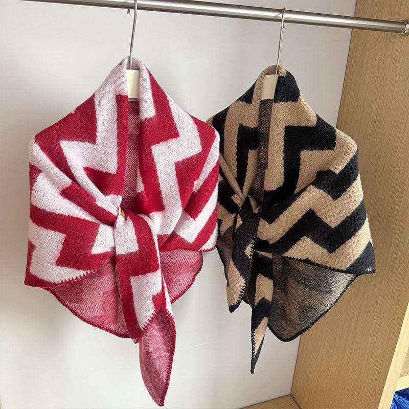 Fashion Wavy Knitted Cashmere Triangle Scarf For Women Warm Winter Shawl Cape And Wrap Female Pashmina Bandana Scarves