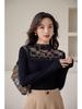 Women's Slim Fit Long Sleeve Mesh Lace Top - Hollow Out Design, Spring/Autumn Versatile Socialite Style