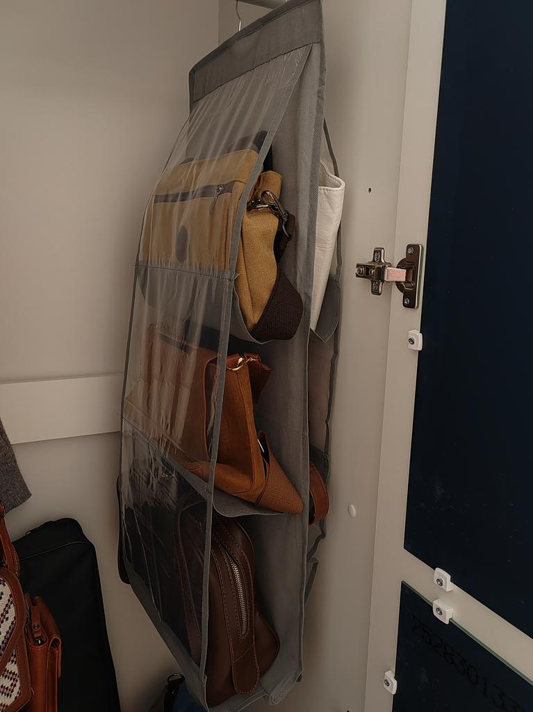 Excellent hanging organizer for bags/umbrellas Has 6 compartments Very comfortable Good quality I recommend 🤗