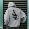 Retro Clock Raven Print Hoodie Autumn Winter Daily Casual Sport Hooded Sweatshirt Male Fashion Pullover Streetwear Oversize Coat