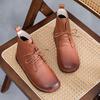 Handmade 100% Genuine Leather Short Boots Women's Flat Heel Big Head Boots Women Leisure Shoes Warm Women Boots