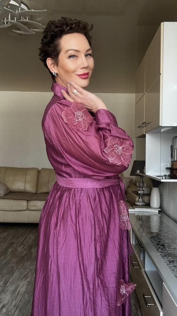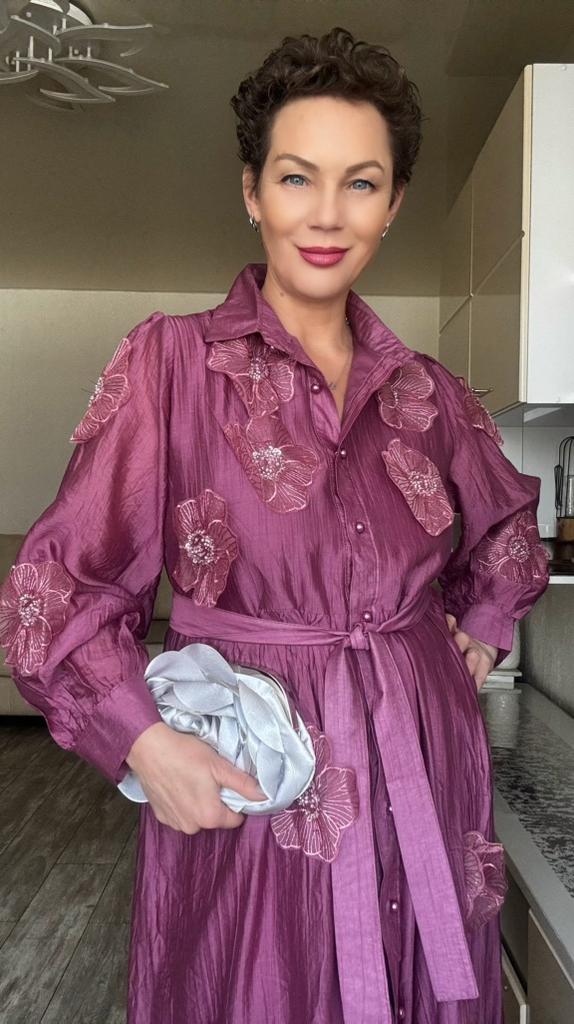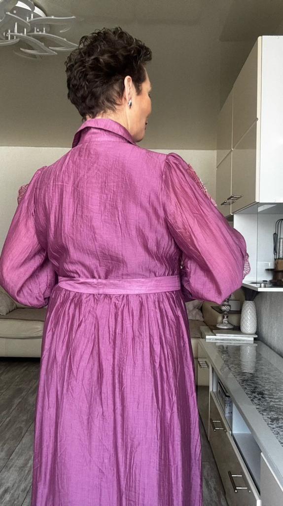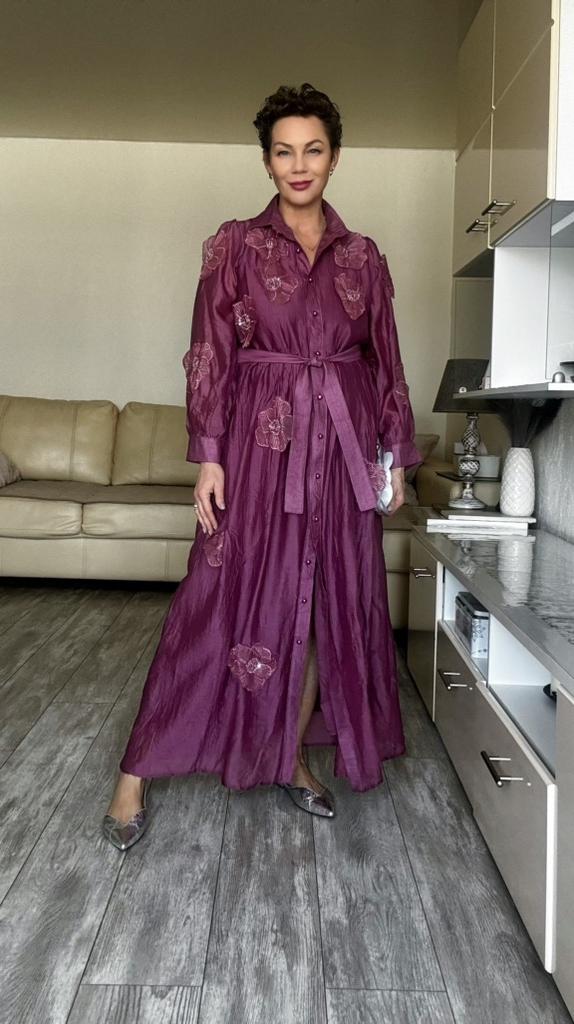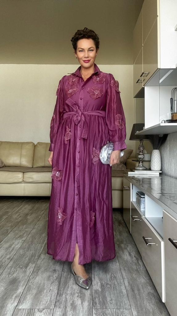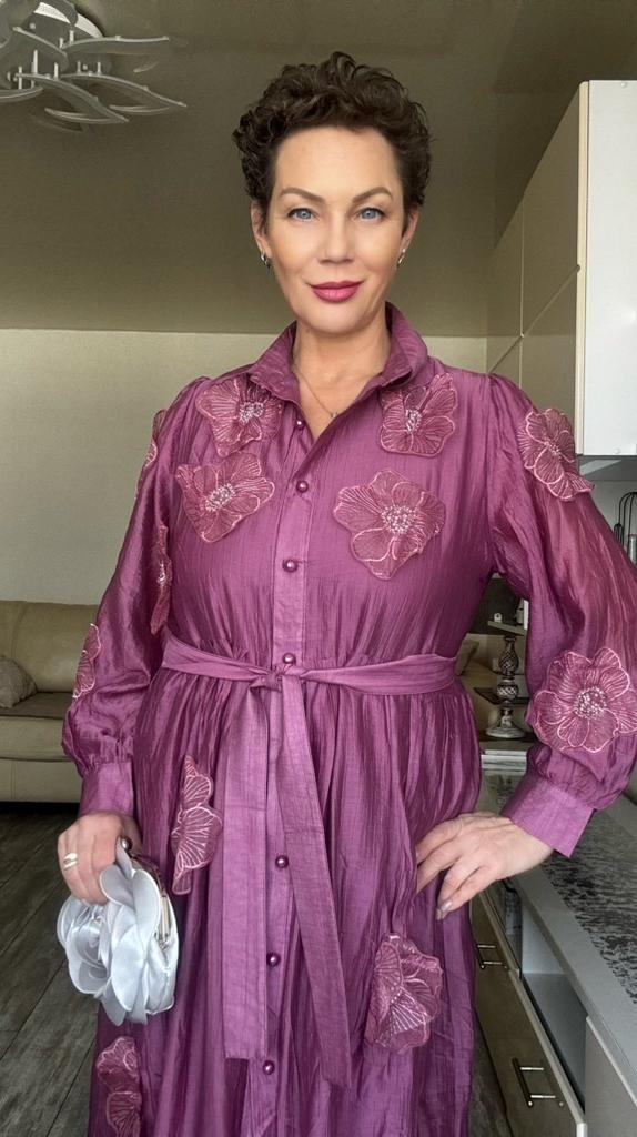 French Nail Bead Three-dimensional Flower Turn-down Collar Long Sleeved Single Breasted Strap Waist Cinching Dress for Women