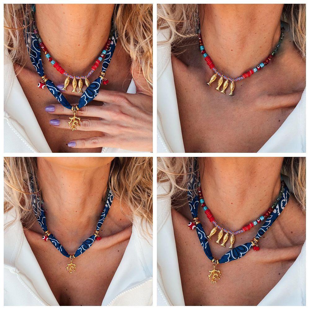 Bohemian Cloth Wrap Scarf Necklace Stainless Steel Charm Pendant New Beach Jewelry