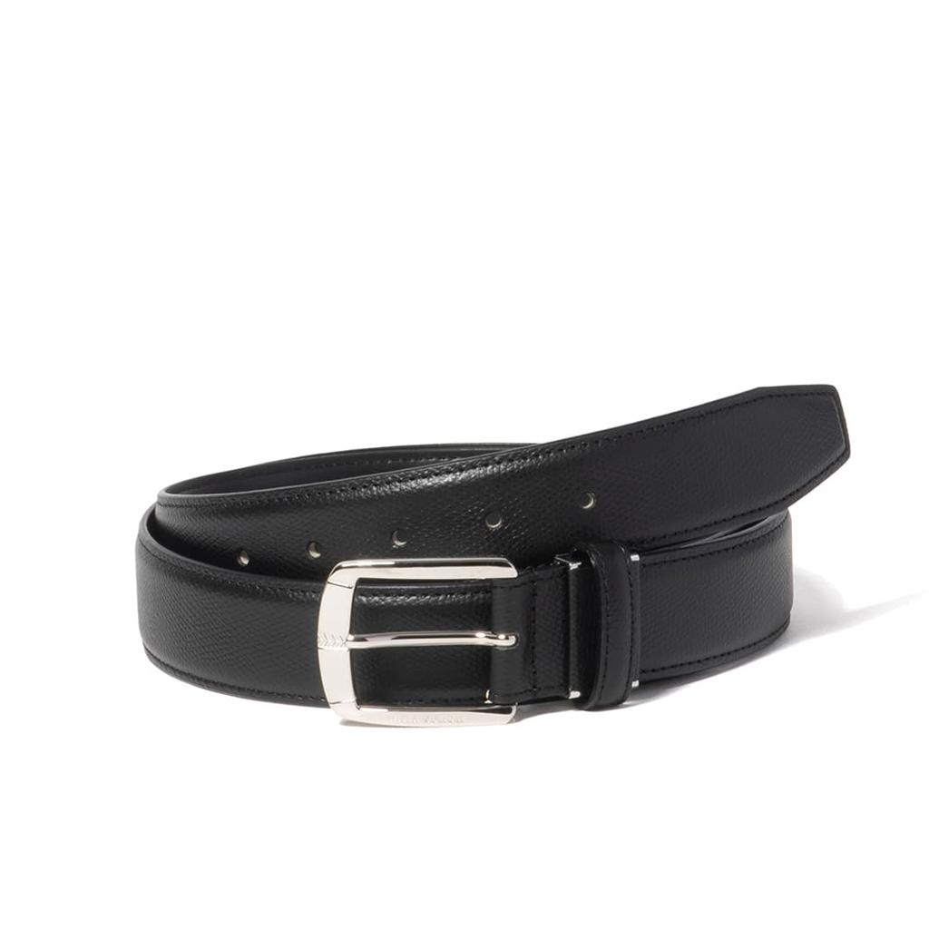Mila Schon Men's 35mm Embossed Leather Pin Belt (Long Size) MSMB461L Black Free Size