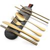 Tableware Reusable Travel Cutlery Set Camp Utensils Set with Stainless Steel Spoon Fork Chopsticks Straw Portable Case